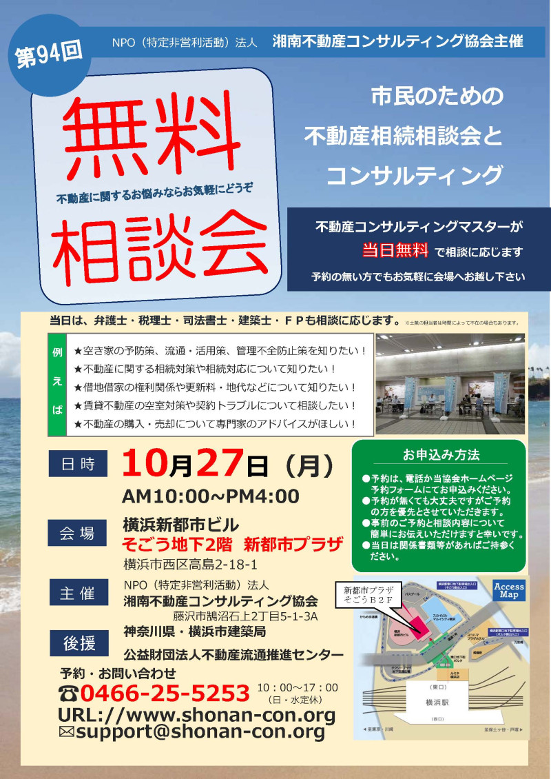 2024年10月28日(月)『横浜新都市ビル 新都市プラザ』にて不動産無料相談会を開催いたします。
